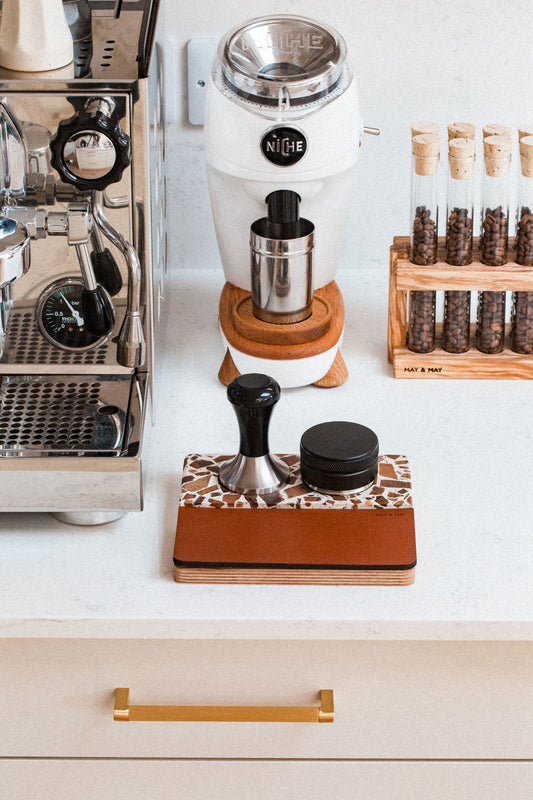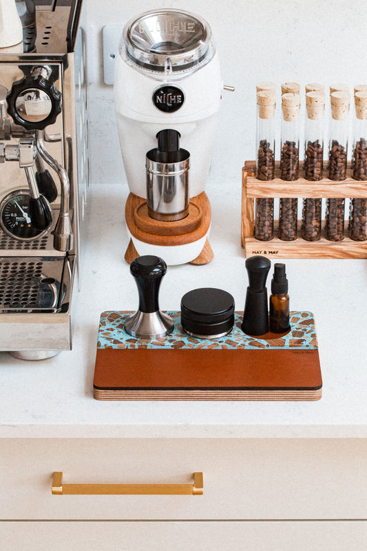 Tamping Station in Espresso/Tan Leather